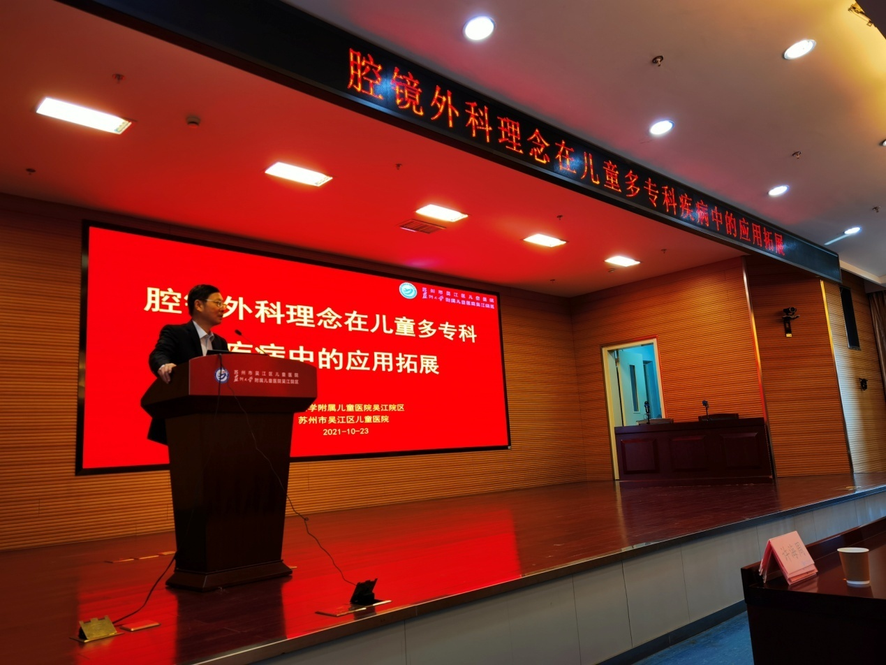 2021年10月23日,苏州市吴江区儿童医院举办了“腔镜外科理念在儿童多专科疾病中的应用拓展”继续教育学习班,苏州大学附属儿童医院汪健书记致辞,杨琦院长,戴进主任,陈晨主任及外科医护人员出席了本次活动。